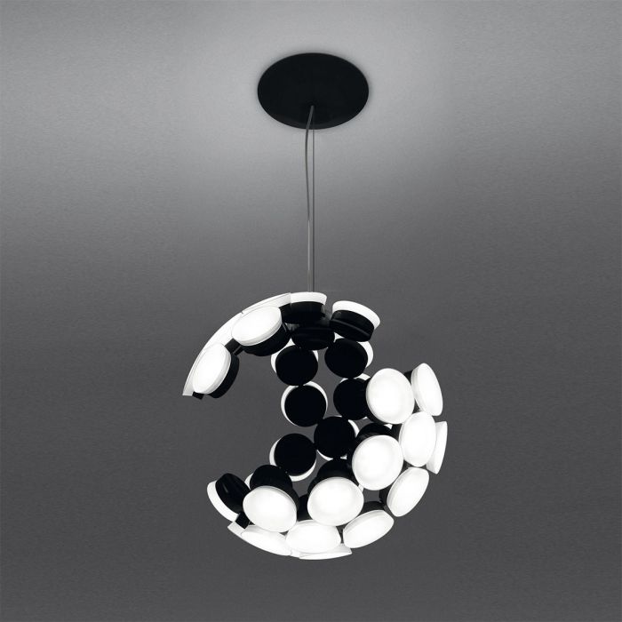 La suspension LED Scopas se compose d'une sphère avec une structure incomplète. Son design rompt radicalement le moule des formes pures et parfois monotone qui caractérisent habituellement ce type de lampe. Comme l'Étoile Noire de l'Empire dans Star Wars, immobile dans l'espace, son inachèvement apparent contraste avec son efficacité technique. La suspension Scopas est un modèle unique et tendance qui apporte une touche moderne et futuriste à votre décoration.