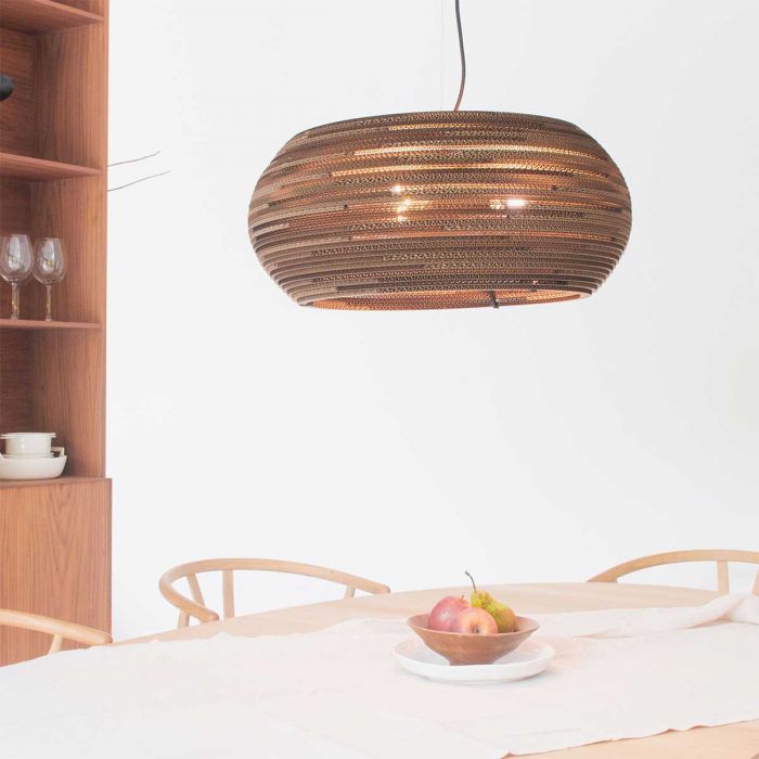 Fabriqué à la main à partir de carton recyclé, le produit phare de Graypants, Scraplights, fournit un éclairage chaleureux, intime et fonctionnel pour toute occasion ou espace. Robuste et élégant, ils est découpé avec précision au laser et assemblés à la main à l'aide d'un adhésif non toxique, et tous les Scraplights sont traités avec un produit ignifuge non toxique.