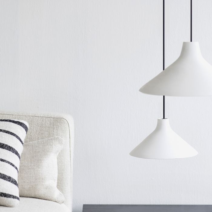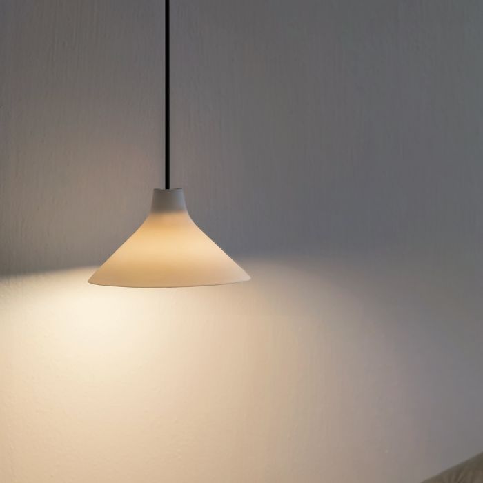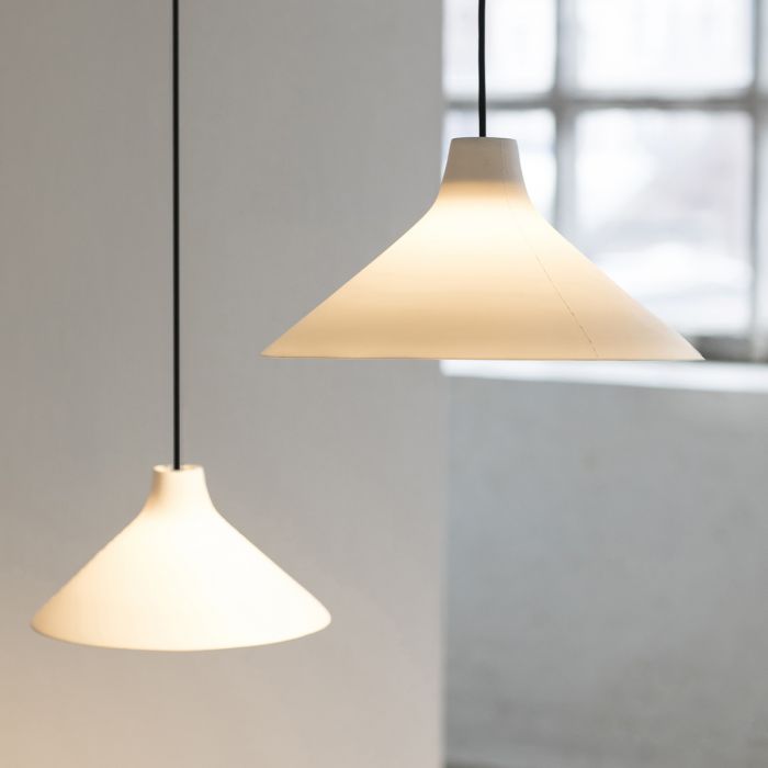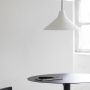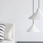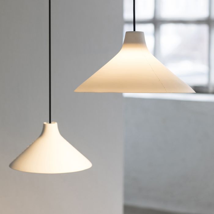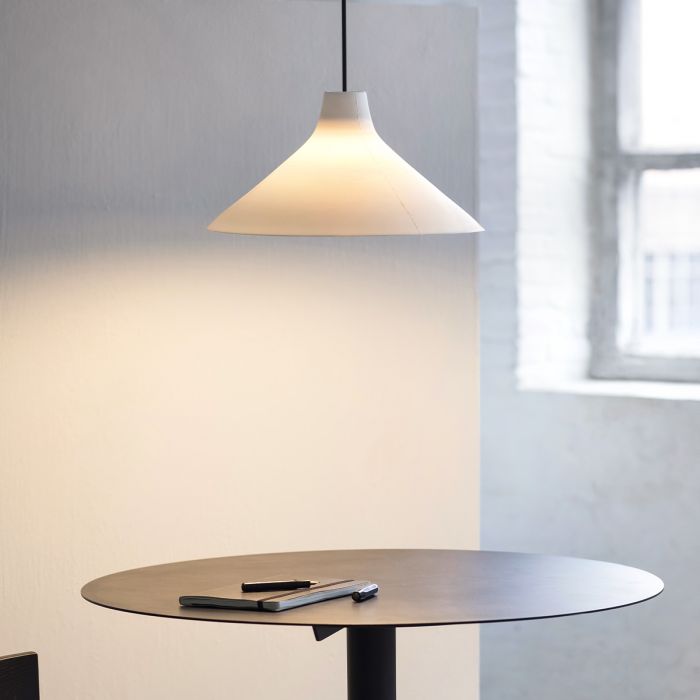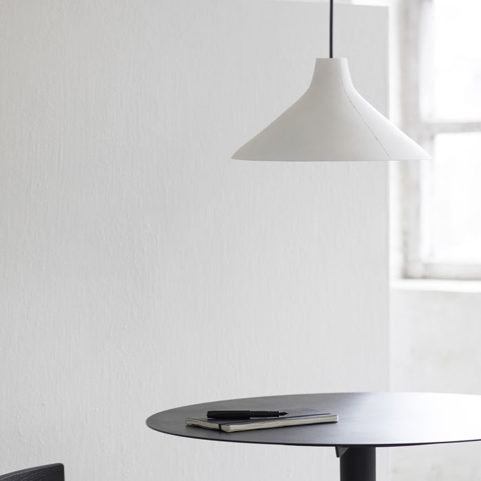 Cette suspension blanche fait partie de la polyvalente collection Seam, elle se compose de porcelaine et de métal. La collection a été conçue dans le but de créer une ligne de luminaires cohérente, où les qualités uniques des matériaux sont mises en valeur dans l’objet en soi. Cette lampe est disponible en trois tailles différentes.