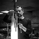Sebastian est né en Bavière. Il a fait des études de design à l’University of Applied Sciences de Potsdam. Il habite à Berlin. C’est difficile de rencontrer Sebastian dans le monde du design. Il travaille dans son atelier de Berlin Est. C’est un homme de terrain. Il a démarré sa carrière comme forgeron, et a fait son apprentissage dans une usine de métallurgie avant d’aller à l’université. La ferraille, le métal et l’acier étaient son quotidien. Son atelier est hors du temps, son travail est son horloge.