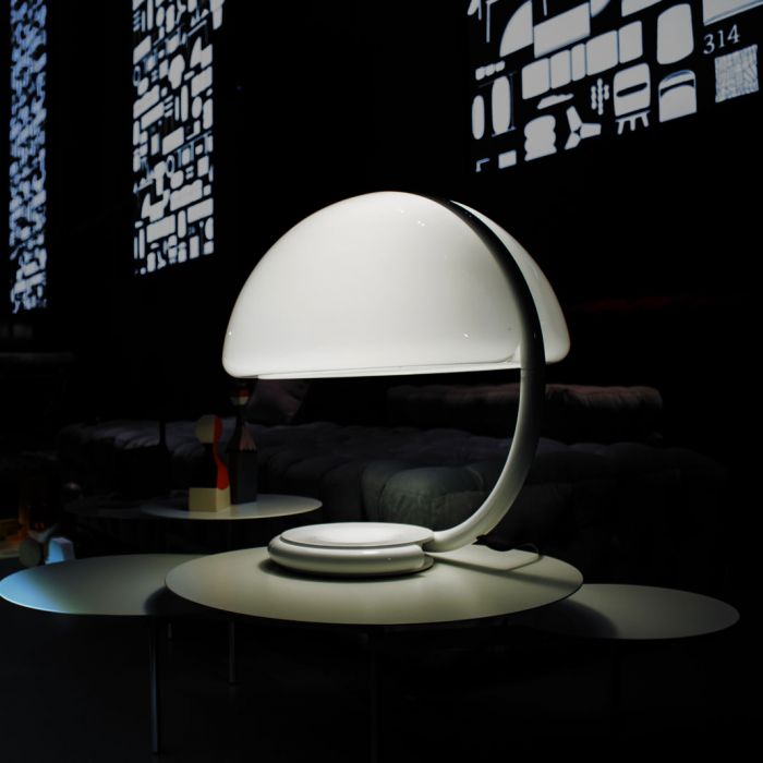 Symbole d’essentialité formelle, d’adaptabilité et de dynamisme, Serpente est aujourd’hui encore, 50 ans plus tard, l’une des lampes icônes figurant sur le catalogue Martinelli Luce. Son design intemporel et l’utilisation de solutions techniques, tels que le système de rotation du support, ont fait d’elle la base de nombreux produits introduits par la suite dans le catalogue.