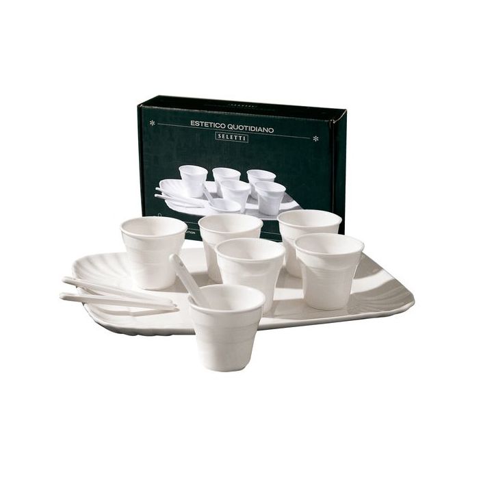 Un ensemble de six tasses pour le café de la collection Estetico Quotidiano. Ce set est composé de 6 tasses, 6 agitateurs et d'un plateau. L'apparence de ce set est un mélange de style entre modernité et tradition. Recommandé pour une cuisine moderne et design ou un restaurant. Ces objets design apporteront un effet tendance à vos moments de convivialité !