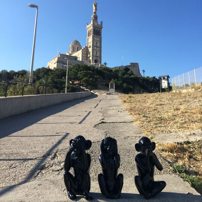 Statues des trois sages, ne vois pas, n'entend pas, ne parle pas.