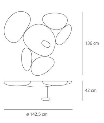 Plafonnier, nouvelle extension de la série Hydro. Une série de galets compose un ciel lumineux qui réfléchit la lumière qui se réverbère sur les surfaces biomorphiques. Disponible en deux versions: dans la première, la lumière indirecte provient d’un corps lumineux contenu dans la lampe. dans la seconde, la lumière indirecte provient d’un projecteur mural détaché de la lampe. Skydro est un module composable qui permet d’effectuer de nombreuses combinaions. Ce plafonnier est proposé en version LED, halogène ou HIT.