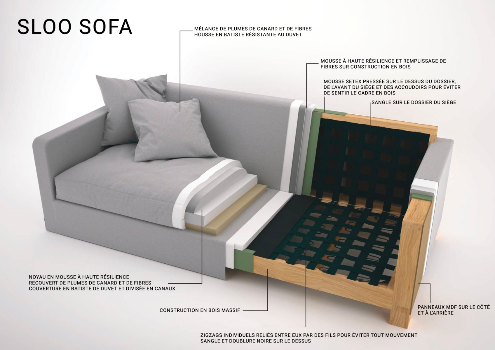 Matériaux : Housse en coton et lin mélangés, bois d'eucalyptus séché au four, mousse haute résilience avec dessus en plumes
