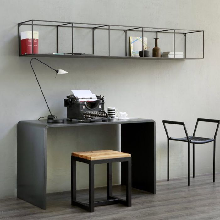 Bureau, structure avec double paroi épaisseur 23mm, avec angles arrondis en tôle d’acier naturelle découpée et courbée.