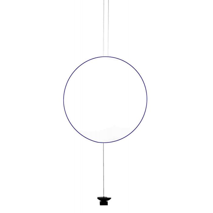 Matériaux : base de fer ciré, anneau de cuivre bleu peint à la main, fil bleu