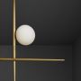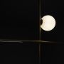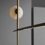 Plafonnier à lumière indirecte vers le bas. Structure en métal finition nickel noir poli, nickel noir mat ou laiton bruni clair et diffuseur en verre soufflé satiné.
