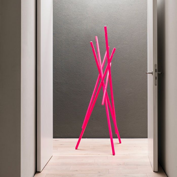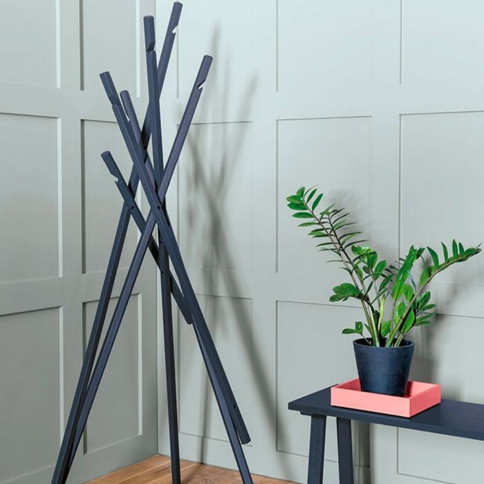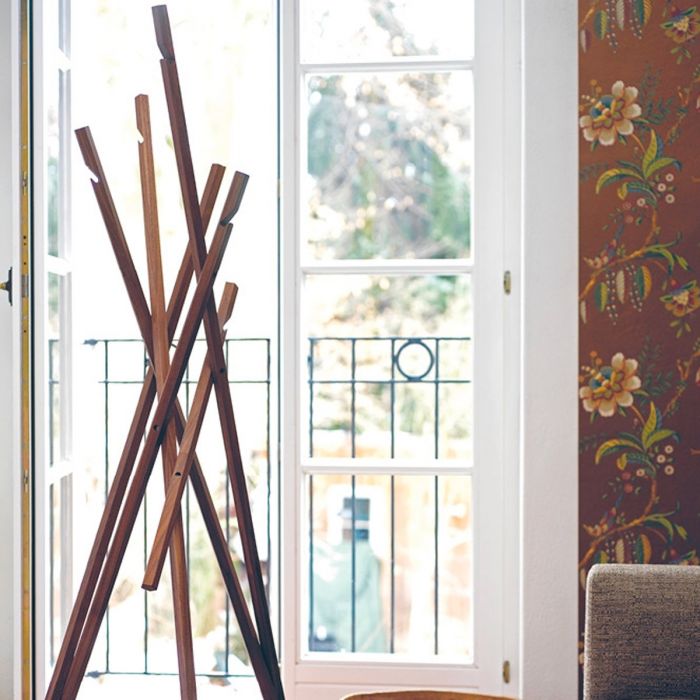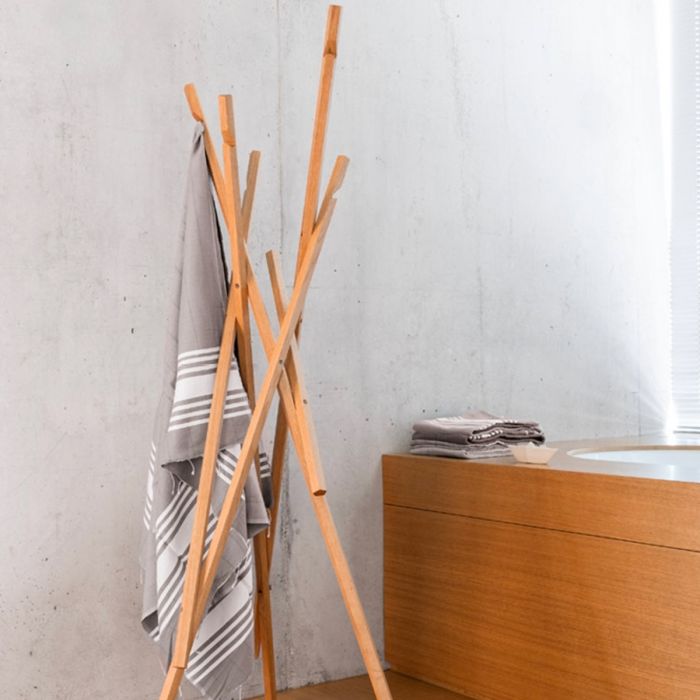 Sticks de Schönbuch par Michael Schwebius. Le portemanteau STICKS est un classique intemporel composé de six tiges en bois massif inclinées et de section rectangulaire. À l'extrémité supérieure de chacune d'elles se trouve une encoche qui offre une capacité de suspension supplémentaire. Dénudé, STICKS ressemble à une installation artistique. Il peut accueillir des vestes, des serviettes et autres objets du même genre et fait preuve de sa fonctionnalité dans les couloirs, les chambres d'amis et les salles de bains, ainsi que dans les bureaux et les salles d'attente. (STICKS est livré partiellement monté et avec tout le matériel de fixation nécessaire). Effet wow garanti.