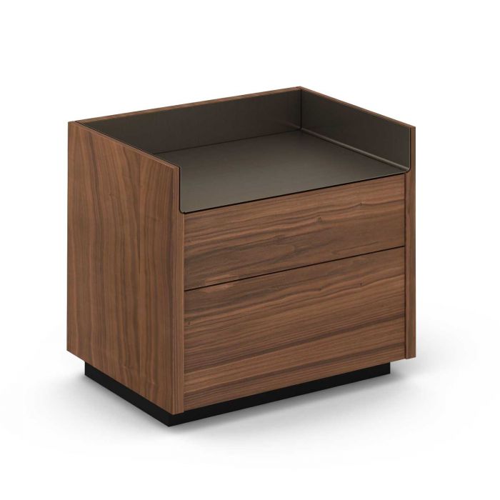 Finitions chêne teinté noir avec dessus or ou rose / chêne blanchi avec dessus bronze / noyer super mat avec dessus bronze