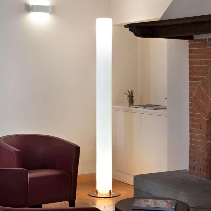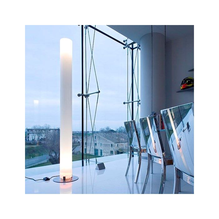 Stylos est un lampadaire dessiné par Achille Castiglioni en 1948 pour Flos. Ce lampadaire à lumière indirecte n'est pas un simple tube lumineux.
