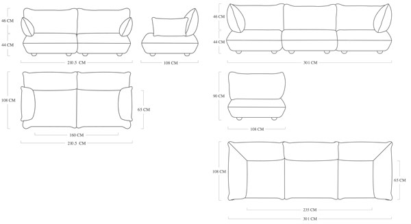 2 places : L 210.5 x Prof. 108 x H90 cm
