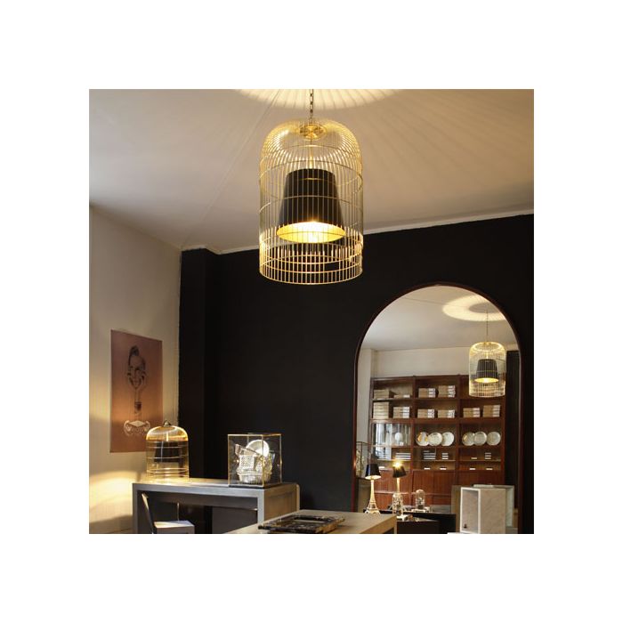 Sunset est une magnifique suspension, pleine de charme, d'une grande finesse et merveilleusement poétique. Cette cage est un concept romantique, elle renferme une lumière mais la laisse briller de tout son éclat à travers ses barreaux. Vous trouverai facilement votre bonheur grâce à sa large gamme de finitions, cage d'or pour un abat-jour rouge sensuel ou noir profond avec intérieur or précieux... Sunset est un luminaire design à posséder !