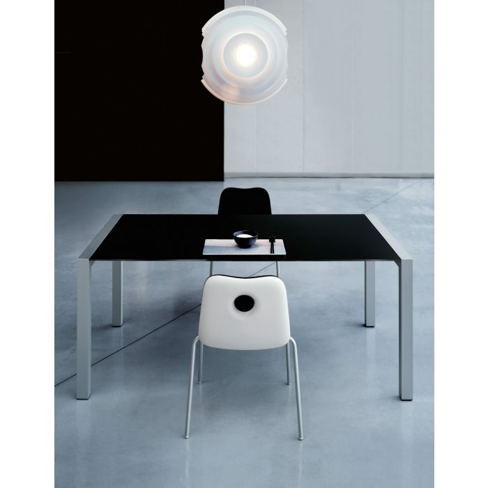 Sushi Alucompact est une table extensible de Bartoli Design pour Kristalia. Avec une structure en aluminium anodisé, cette table se pare d'un plateau en laminé stratifié Alucompact. L'Alucompact est un stratifié à haute pression avec des feuilles d'aluminium insérées en phase de stratification, pour donner une grande stabilité structurelle.