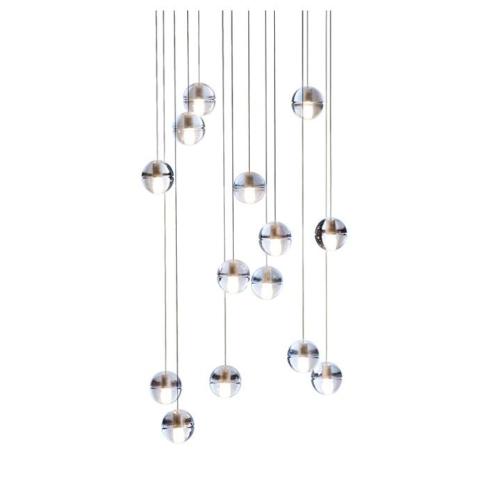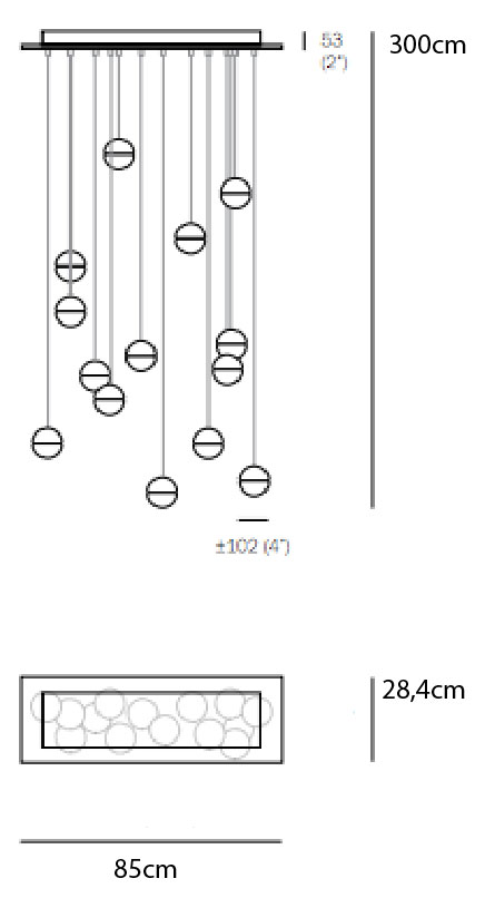 La suspension 14.14 est une suspension linéaire comprenant 14 pendants en verre avec des câbles tressés coaxiaux branchés à une marquise rectangulaire peinte en poudre blanche. Généralement utilisé pour des salles à manger, 14.14 convient aussi pour les bars ou les cuisines, dans les couloirs ou les vestibules et en tant que séparateur de pièce et permet ainsi de créer des atmosphères poétique et féerique. La longueur des câbles de ces belles boules de lumière est réglable, donc c'est à vous de les varier pour créer des ambiances différentes.