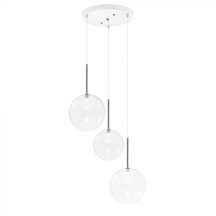 La suspension B3 reprend le concept d’accumulation de bulles de verre pour former une suspension sculpturale et aérienne. Ces trois bulles flottantes et presque en apesanteur sont dessinées et réalisées à la main, elles retranscrivent et exploitent les qualités de réflexion naturelle d’un verre pur permettant ainsi une excellente diffusion lumineuse. Ces corps flottants sont suspendus à un disque métallique minimaliste et discret afin de former un plafonnier tout en légèreté et en délicatesse. Cette myriade de bulles de verre à pour possibilité de s’adapter à vos intérieurs. En effet la suspension s’ajuste en longueur pour passer de 40 centimètres à 140 centimètres de longueur.