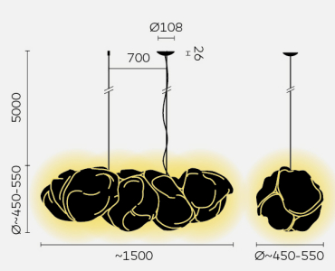 Sources : (LED inclus) 70W, 7097lm, 2700K-3000K-4000K, 220-240V, 50Hz Dimmable