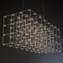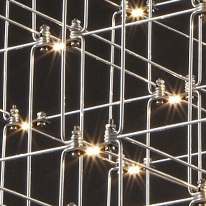 Cosmos Square a l'air structuré mais toujours harmonieux. Cartes de circuits LED placées modulaires, de minuscules tiges métalliques sont les deux seuls éléments de base de ce luminaire. Ils donnent à la lampe sa structure et sa forme. Les circuits imprimés ont des LED des deux côtés. 2/3 de la lumière descend et 1/3 monte.