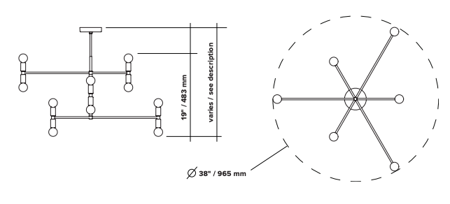 La collection Dot juxtapose l’aspect brut des ampoules dénudées à la texture riche du laiton. Le résultat est une collection géométrique inspirée par un équilibre gracieux de lignes et de points incandescents.