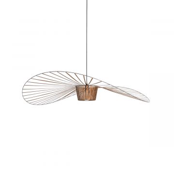 Cette construction géométrique, faite de fil de métal, joue avec la transparence et semble flotter en apesanteur. Délicate et légère malgré ses dimensions XXL, cette structure sculpturale est un totem lumineux, une pièce maîtresse qui habillera avec panache les belles hauteurs sous plafond ! L’abat-jour se compose de plusieurs volumes aériens qui s’empilent pour donner naissance à une large structure ajourée et incroyablement équilibrée. La lumière filtrant à travers les multiples fils de métal offre un bel éclairage, tout en jeu d’ombres et de lumières. La lumière est à la fois directe et indirecte, dirigée vers le sol et le plafond.