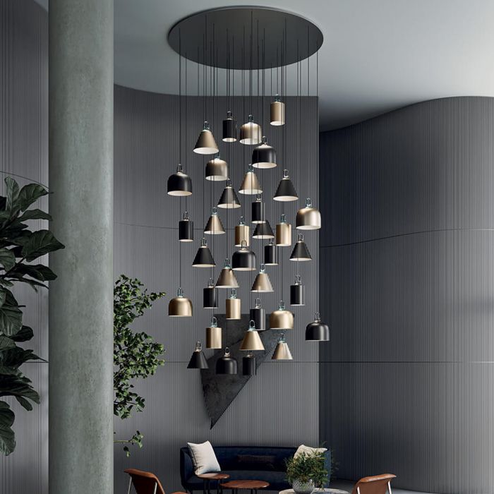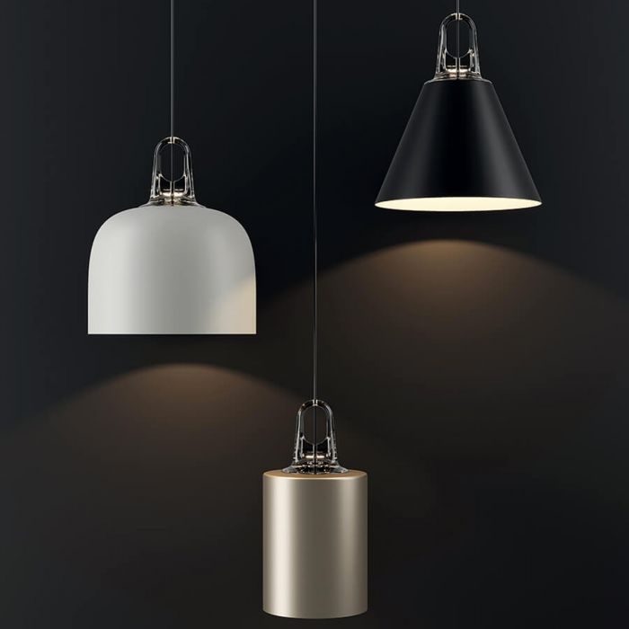 Immédiateté de fonction, simplicité des lignes, matériaux durables, modularité en fonction des goûts personnels. S’inspirant des abat-jours des ateliers d’artistes du début du XXe siècle, JIM est un système de lampes à suspension arborant des formes distinctives et une composition polyvalente qui s’adapte à tous les styles d’habitation. La gamme chromatique souligne encore plus la polyvalence de JIM : les quatre différentes finitions disponibles pour les diffuseurs peuvent s’assortir, au choix, aux trois différentes tonalités du crochet de soutien.
