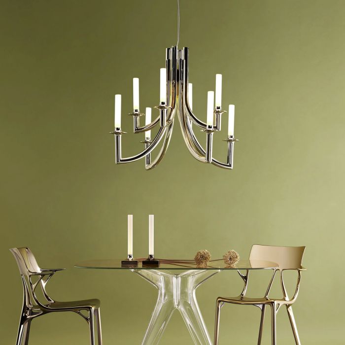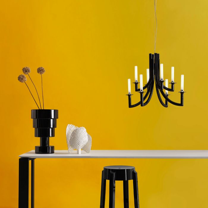 Le lustre Khan de Philippe Starck : la rencontre des styles, de l’éclectisme du XVIIIe jusqu’au minimalisme contemporain, crée un nouveau concept d’élégance et de modernité. La marque du design rencontre la technologie innovante du nouveau polycarbonate 2.0. en noir, champagne et transparent.