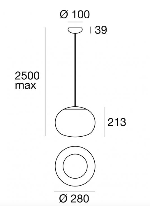 Matériaux : Diffuseur en pâte de verre soufflé, anneau interne en aluminium, pavillon en métal.