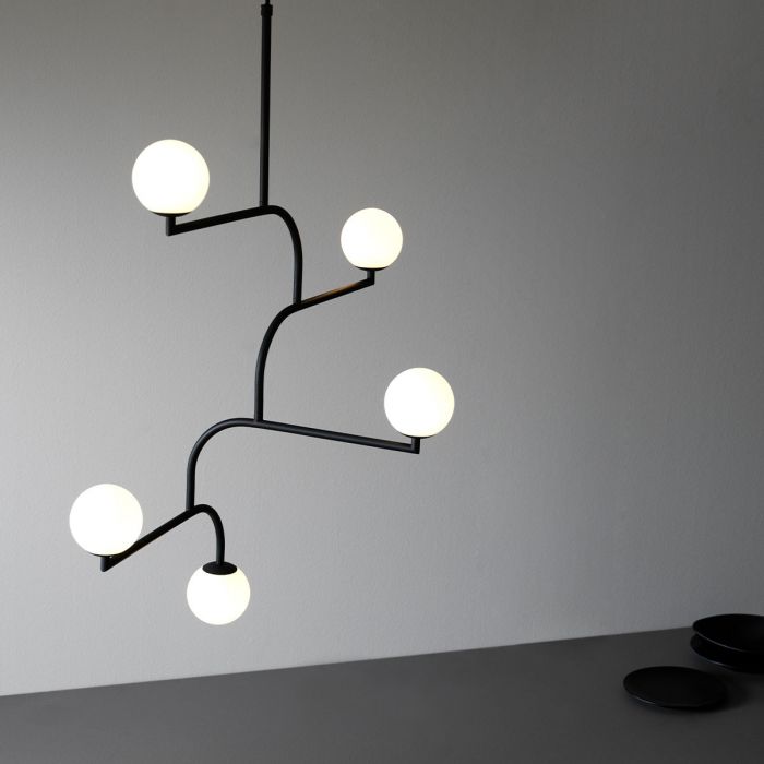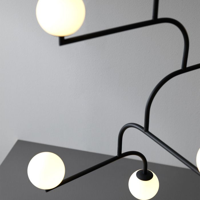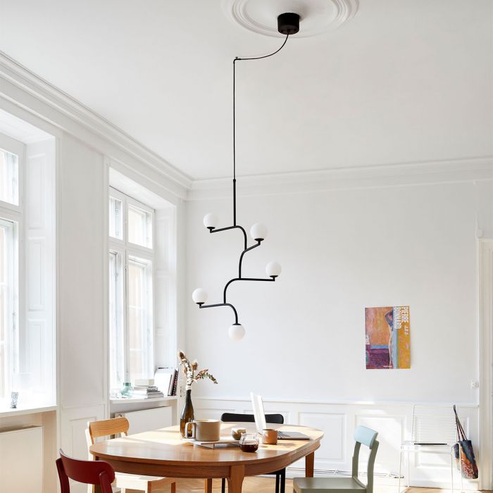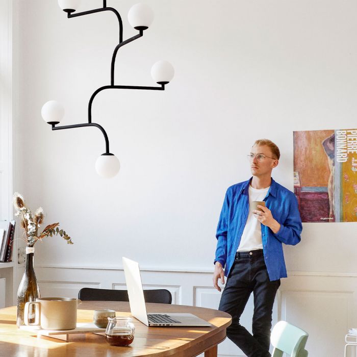 «Donnez-moi une lampe qui aura fière allure sur un loft de New York - avec ces mots, j'ai commencé à travailler avec la série Mobil pour Pholc.» - Monika Mulder. Applique mural en métal et verre opale de la marque Pholc.
