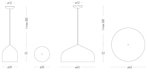 Les lampes à suspension de la série Odile sont disponibles en deux formes et diamètres différents, S - 20 cm et M - 43 cm. L'abat-jour est en aluminium recouvert de poudre époxy et est disponible en FT blanc, FT gris anthracite, FT vert sauge et FT moutarde.