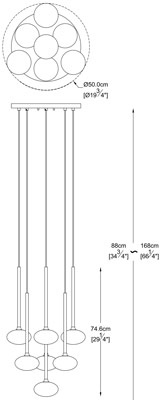 Orion Cluster se distingue par sa composition verticale de sept globes en verre opalin, suspendus à différentes hauteurs dans un équilibre à la fois léger, sculptural et contemporain. Son dessin évoque une constellation lumineuse en suspension : une structure fine, rythmée et élégante, qui anime l’espace avec subtilité tout en créant un véritable point focal décoratif. Elle diffuse une lumière douce, homogène et enveloppante, idéale dans une entrée avec belle hauteur sous plafond, au-dessus d’une table ronde, dans un angle de salon ou dans une cage d’escalier. Grâce à sa composition en grappe et à son jeu de niveaux, Orion Cluster habille le volume avec raffinement et apporte une présence architecturale forte, sans jamais alourdir l’ensemble. Les diffuseurs sont réalisés en verre fait main : de légères bulles, micro-marques d’outillage, variations de motif ou de teinte peuvent apparaître au cours de la fabrication. Ces particularités ne sont pas des défauts, mais la signature artisanale qui rend chaque pièce unique.