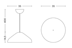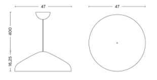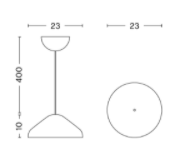 Matériaux : abat-jour en acier pressé avec un brillant humide, finition par pulvérisation, opalescent moulé par injection, diffuseur en acrylique (PMMA), câble en tissu tressé avec une isolation en silicone