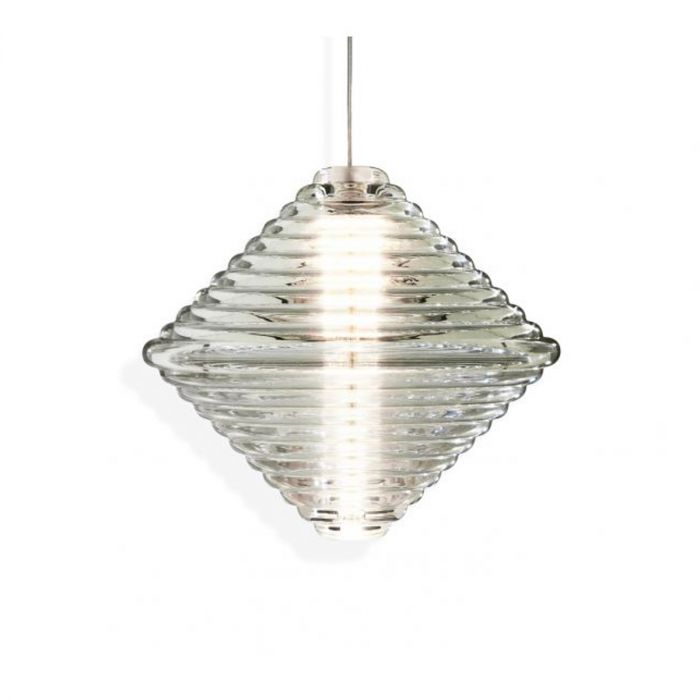Press est une série de luminaires fabriqués à partir du verre le plus épais et le plus transparent, avec un détail de surface linéaire arrondi satisfaisant. Nommée à juste titre Sphere et Cône, la forme rappelle les bouées de navigation et les jouets d'enfants. Le verre nervuré crée une diffusion de la source lumineuse et projette des motifs linéaires et rayés. Audacieuse dans sa silhouette et simple dans sa fonction, Press est fabriquée en laissant tomber des globs massifs de verre fondu à 1 200 degrés centigrades, pressés dans des moules en fer sous des tonnes de pression pour créer des lumières immensément durables.
