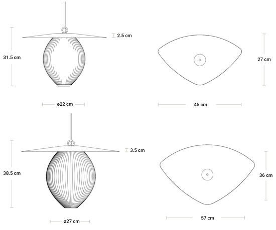Suspension Satellite de Gubi par Mathieu Matégot. La suspension Satellite de deux tailles est conçue par Mathieu Matégot en 1953 avec des formes géométriques et une teinte organique pour créer une esthétique sculpturale exceptionnelle. Le nom, Satellite, a été donné par Matégot en clin d'œil et en hommage aux progrès scientifiques en France dans les années d'après-guerre. La suspension Satellite détient le trait distinctif de Rigitulle, une technique et un matériau inventés par le designer lui-même qui permet de plier et de plier la tôle en forme de tissu en une suspension originale de forme oblongue. L'abat-jour a cinq options de couleur ; noir minuit, nuage blanc, cerise timide, or vénitien et gris pluvieux, et est unique avec son ampoule entièrement recouverte de métal perforé pour dégager une lumière atmosphérique - créant une apparence festive. L'interaction de la lumière et des ombres projetées sur les murs et les sols crée une caractéristique dramatique dans n'importe quelle salle à manger, couloir ou restaurant. Accrochez le pendentif satellite seul comme pièce caractéristique ou en plusieurs pour créer un nuage de luminosité.