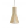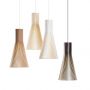 La suspension Secto 4200 de chez Secto Design, avec son style nordique, est entièrement fabriquée à la main par des artisans hautement qualifiés et certifiés de Finlande. Les lattes des abat-jours sont reliées par des anneaux réalisés en "aircraft plywood", matériau utilisé en aéronautique car hautement résistant à la chaleur. Cette suspension dispose d'un câble électrique de 1.5 m de longueur (câble plus long sur demande). Secto Design a une démarche citoyenne sur la réduction de son empreinte écologique en s'approvisionnant localement en bois et en recyclant ses déchets comme bois de chauffage, en jouets pour les crèches ou pour les écoles de menuiserie. Très tendance, cette suspension Secto affiche des finitions élégantes et minimalistes. Grâce à sa forme conique, très raffinée, cette suspension devient un véritable élément de décoration.