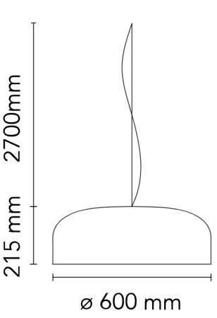 Suspension à lumière directe. Corps en aluminium. Disponible en blanc, noir brillant, noir mat, rouge, vert et boue. Diffuseur moulé par injection en métacrylate opalin. Pièce de fixation plafond et câble de suspension en acier. Câble électrique 5 pôle double isolation en PTFE (fluor polymère), longueur utile 2700 mm.