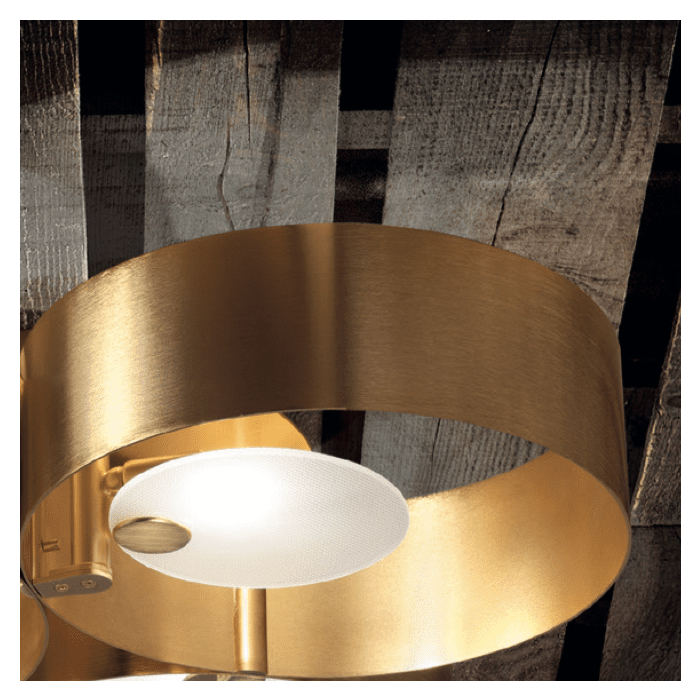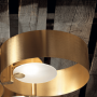 Sound est une collection de lampes en métal avec diffuseur en verre décoré. Disponible en 2 finitions différentes, or brossé et bicolore noir mat / laiton brossé.