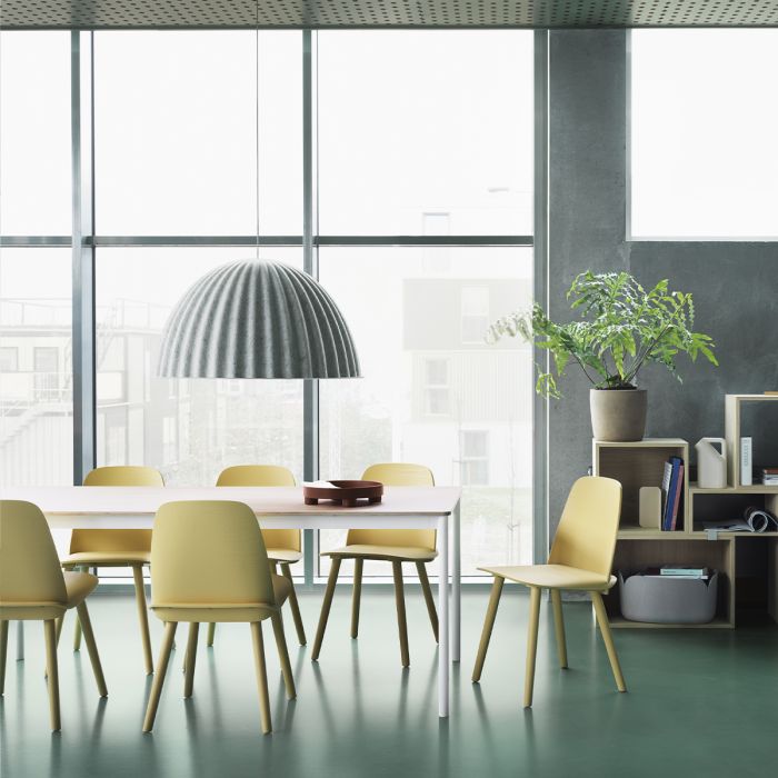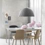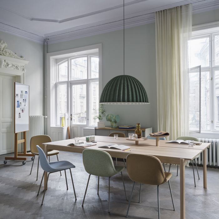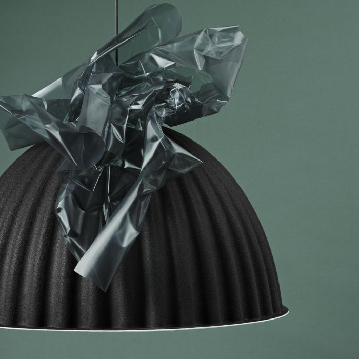 Conçue dans un matériau qui utilise jusqu'à 80% de fibres plastiques recyclées, la suspension Under The Bell apporte non seulement une expression tactile et moderne à n'importe quel espace, mais améliore également l'acoustique d'une pièce grâce à son abat-jour doux, associé à son graphisme linéaire et sa palette de couleurs subtiles.