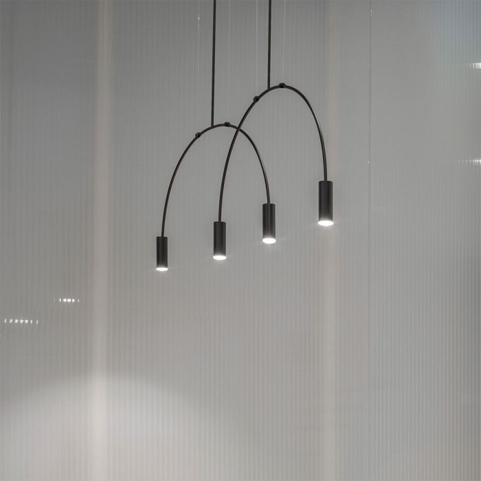 La suspension Volta de Estiluz possède une structure métalique incurvée, des têtes cylindriques en aluminium, ainsi que des diffuseurs en acrylique. Sa hauteur est ajustable et ses câbles sont en nylon transparents. Son style design trouvera sa place dans votre habitat.