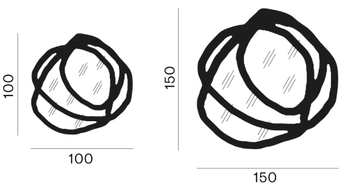 Les miroirs muraux Sweet 97/98 se caractérisent par des bords arrondis et irréguliers et sont disponibles dans deux tailles. Ces miroirs dégagent une grande puissance expressive et décorative grâce au motif sérigraphié noir ou blanc qui dessine sur la surface des cercles et des formes irrégulières qui s’entrecroisent dans un jeu de lignes superposées.