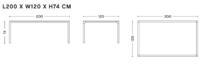 L 200 x larg. 95 x H 74 cm