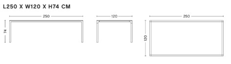 L 250 x larg. 95 x H 74 cm
