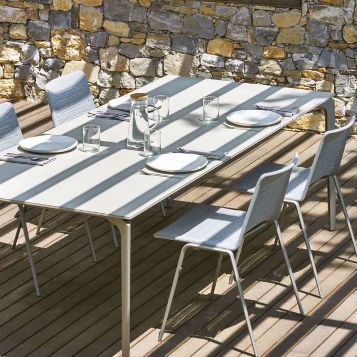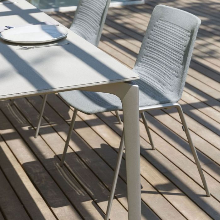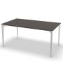Une collection de tables caractérisée par la personnalisation. L'ensemble de la collection AllSize est personnalisable, à la fois en termes de hauteur et de taille du plateau. Le style géométrique et rigoureux d'AllSize est mis en valeur par les plateaux de table à effet pierre et reposant sur une base en aluminium peint, créant un contraste intéressant entre les matériaux. Les pieds, le cadre et les supports sont en aluminium extrudé. Une version standard est également disponible, avec un plateau en aluminium peint.