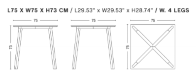 Matériaux : plateau en laminé ou stratifié, bords en contreplaqué teinté ou brut, pieds en hêtre massif peint ou non traité, ou chêne vernis à base d'eau