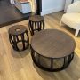 Inspiration orientale pour les tables basses Loto, des accessoires sophistiqués qui s'intègrent à différents environnements. Caractérisées par un volume circulaire allégé par un cadre périphérique en lattes massives courbées.