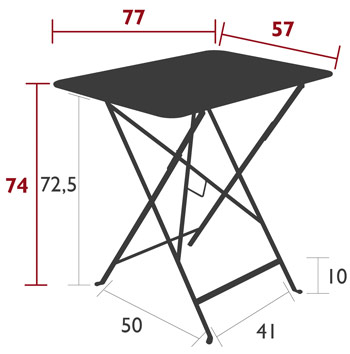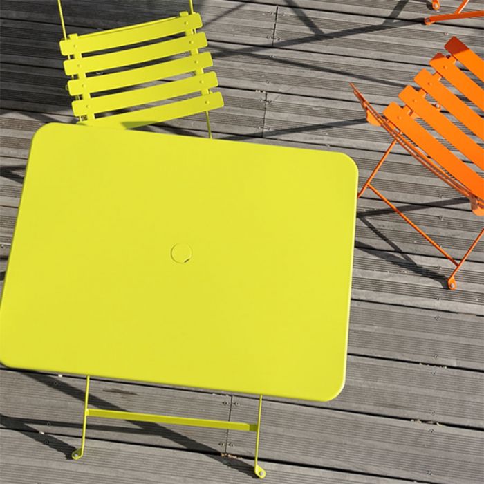 Table Bistro 77 x 57 cm de Fermob. Fermob vous présente la table 77 x 57 cm de la collection Bistro en métal. La collection Bistro crée en 1889 ne cesse de séduir avec son mobilier intemporel. Le mobilier pliant, robuste, léger et facile à transporter trouve sa place sur les terasses de café, dans un coin de lecture ou encore dans votre jardin. Cette collection pleine de simplicité vous est proposée dans de nombreux coloris acidulés apportant la gaité ou que vous soyez. Adapté pour l'intérieur et l'extérieur, il deviendra rapidemment indispensable à votre quotidien. Son design minimaliste plaît aux tout petits autant qu'aux grands. La table pliante Bistro en métal dispose d'une structure en acier laqué traitée anti-corrosion et d'un plateau en tôle acier. Elle se plie pour un rangement gain de place. A associer avec les chaises Bistro Fermob. Les tables pliantes rectangles Bistro existent en 4 tailles.