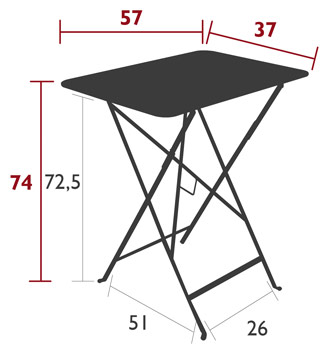 Table Bistro rectangulaire 37 x 57 cm de Fermob. Fermob vous présente la table pliante rectangulaire de la collection Bistro en métal. La collection Bistro crée en 1889 ne cesse de séduir avec son mobilier intemporel. Le mobilier pliant, robuste, léger et facile à transporter trouve sa place sur les terasses de café, dans un coin de lecture ou encore dans votre jardin. Cette collection pleine de simplicité vous est proposée dans de nombreux coloris acidulés apportant la gaité ou que vous soyez. Adapté pour l'intérieur et l'extérieur, il deviendra rapidemment indispensable à votre quotidien. Son design minimaliste plaît aux tout petits autant qu'aux grands. La table pliante rectangle Bistro en métal dispose d'une structure en acier laqué traitée anti-corrosion et d'un plateau en tôle acier. Elle se plie pour un rangement gain de place. A associer avec les chaises Bistro Fermob. Les tables pliantes rectangles Bistro existent en 4 tailles.