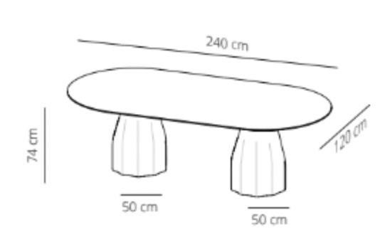 L 240 x H 74 x larg. 120 x diam. pieds 50 cm