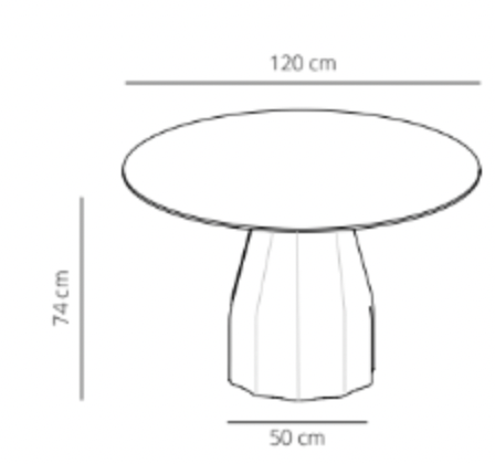 H 74 x diam. pied 50 x diam. plateau 120 cm
