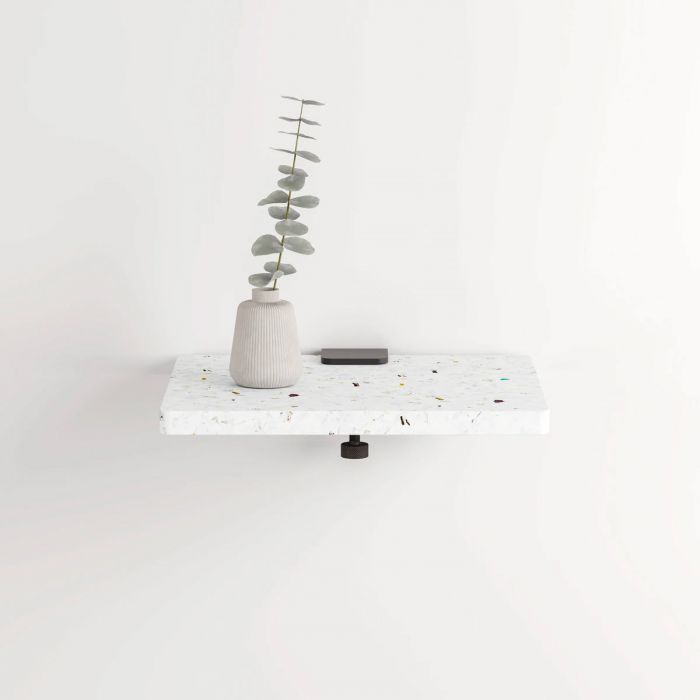 Table de chevet en plastique recyclé blanc Venezia de TipToe. La table de chevet en plastique recyclé blanc VENEZIA est fabriquée à partir de pots de yaourts. Son design minimaliste lui permet de prendre place dans n’importe quel style de chambre. Chaque plateau est unique : la couleur et les motifs peuvent varier, c’est ce qui fait tout le charme de cette collection.