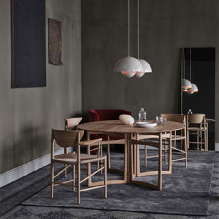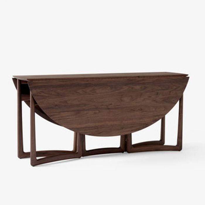Cherchant à créer une pièce polyvalente qui s'adapterait à son environnement, le duo de designers Hvidt & Mølgaard a conçu Drop Leaf en 1956. Comme son nom l'indique, cette belle table a été construite avec une section articulée de chaque côté qui se replie à partir du centre fixe. Disponible en noyer massif ou en chêne.
